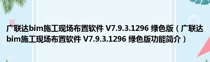 广联达bim施工现场布置软件 V7.9.3.1296 绿色版(广联达bim施工现场布置软件 V7.9.3.1296 绿色版功能简介)