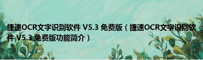 捷速OCR文字识别软件 V5.3 免费版(捷速OCR文字识别软件 V5.3 免费版功能简介)
