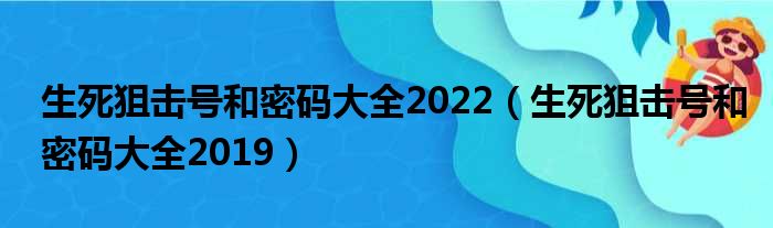 导读 大家好,今天小六子来为大家解答以下的问题,关于生死狙击号和密码大全2022,生死狙击号和密码大全2019这个很多人还不知道,现在让我们一起
