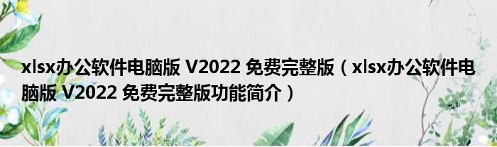 xlsx办公软件电脑版 V2022 免费完整版(xlsx办公软件电脑版 V2022 免费完整版功能简介)