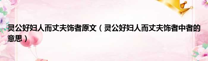 灵公好妇人而丈夫饰者原文(灵公好妇人而丈夫饰者中者的意思)