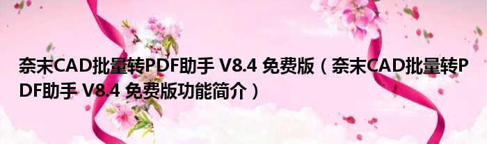 奈末CAD批量转PDF助手 V8.4 免费版(奈末CAD批量转PDF助手 V8.4 免费版功能简介)