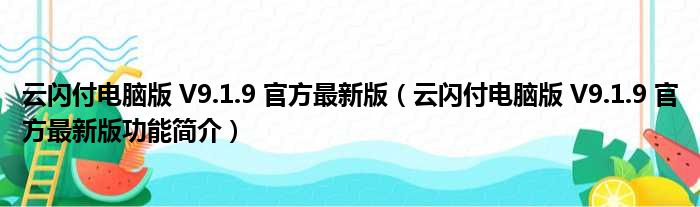 云闪付电脑版 V9.1.9 官方最新版(云闪付电脑版 V9.1.9 官方最新版功能简介)