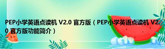 PEP小学英语点读机 V2.0 官方版(PEP小学英语点读机 V2.0 官方版功能简介)