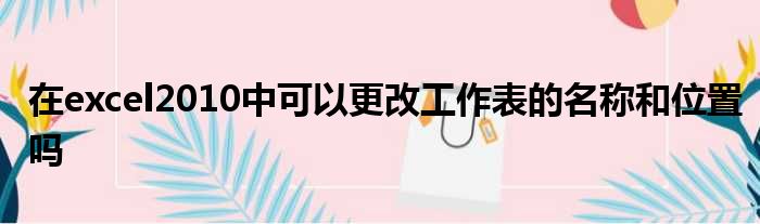 导读 大家好,今天小六子来为大家解答以下的问题,关于在excel2010中可以更改工作表的名称和位置吗这个很多人还不知道,现在让我们一起来看看吧!