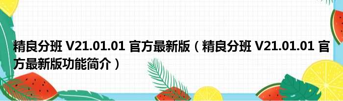 精良分班 V21.01.01 官方最新版(精良分班 V21.01.01 官方最新版功能简介)