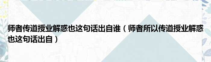 师者传道授业解惑也这句话出自谁(师者所以传道授业解惑也这句话出自)