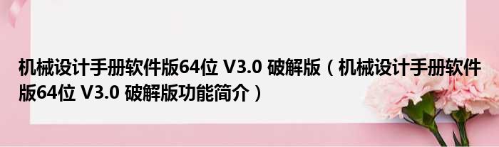 导读 大家好,关于机械设计手册软件版64位 V3 0 破解版,机械设计手册软件版64位 V3 0 破解版功能简介这个很多人还不知道,小勒来为大家解答以