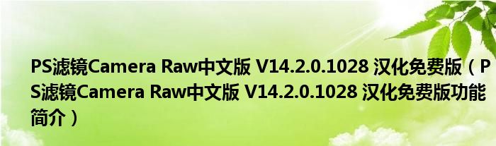 PS滤镜Camera Raw中文版 V14.2.0.1028 汉化免费版(PS滤镜Camera Raw中文版 V14.2.0.1028 汉化免费版功能简介)