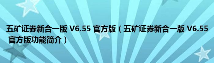 五矿证券新合一版 V6.55 官方版(五矿证券新合一版 V6.55 官方版功能简介)