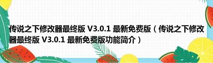 传说之下修改器最终版 V3.0.1 最新免费版(传说之下修改器最终版 V3.0.1 最新免费版功能简介)