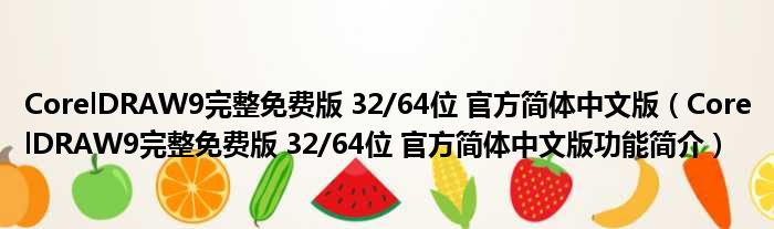 CorelDRAW9完整免费版 32/64位 官方简体中文版(CorelDRAW9完整免费版 32/64位 官方简体中文版功能简介)