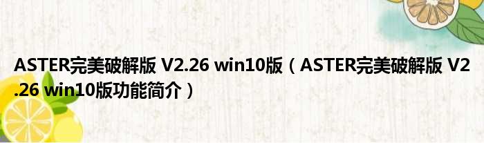 ASTER完美破解版 V2.26 win10版(ASTER完美破解版 V2.26 win10版功能简介)
