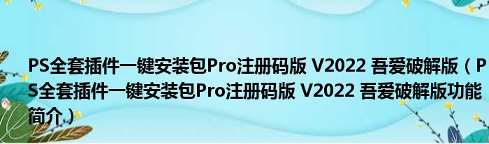 PS全套插件一键安装包Pro注册码版 V2022 吾爱破解版(PS全套插件一键安装包Pro注册码版 V2022 吾爱破解版功能简介)