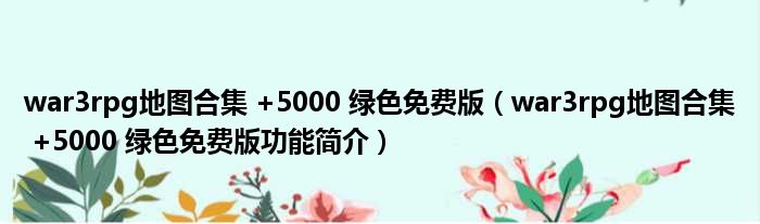 war3rpg地图合集 +5000 绿色免费版(war3rpg地图合集 +5000 绿色免费版功能简介)