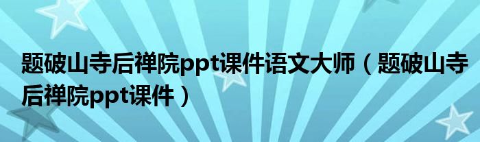 大家好,今天小六子来为大家解答以下的问题,关于题破山寺后禅院ppt课件语文大师,题破山寺后禅院ppt课件这个很多人还不知道,现在让我们一起来看看吧!