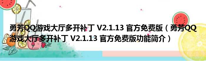 勇芳QQ游戏大厅多开补丁 V2.1.13 官方免费版(勇芳QQ游戏大厅多开补丁 V2.1.13 官方免费版功能简介)