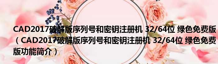 CAD2017破解版序列号和密钥注册机 32/64位 绿色免费版(CAD2017破解版序列号和密钥注册机 32/64位 绿色免费版功能简介)