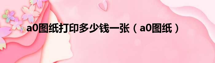 大家好,今天小六子来为大家解答以下的问题,关于a0图纸打印多少钱一张,a0图纸这个很多人还不知道,现在让我们一起来看看吧!
