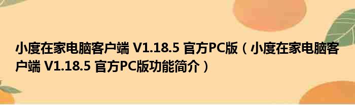 导读 大家好,关于小度在家电脑客户端 V1 18 5 官方PC版,小度在家电脑客户端 V1 18 5 官方PC版功能简介这个很多人还不知道,小勒来为大家解答