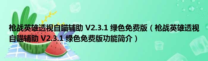 枪战英雄透视自瞄辅助 V2.3.1 绿色免费版(枪战英雄透视自瞄辅助 V2.3.1 绿色免费版功能简介)