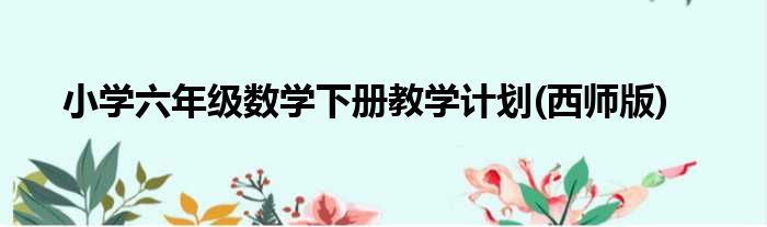 大家好,今天小六子来为大家解答以下的问题,关于小学六年级数学下册教学计划(西师版)这个很多人还不知道,现在让我们一起来看看吧!