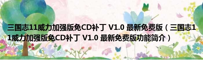 三国志11威力加强版免CD补丁 V1.0 最新免费版(三国志11威力加强版免CD补丁 V1.0 最新免费版功能简介)