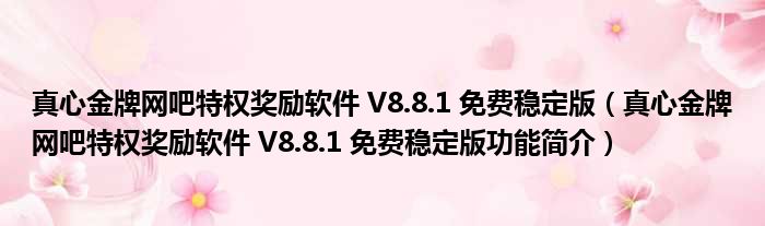 导读 大家好,关于真心金牌网吧特权奖励软件 V8 8 1 免费稳定版,真心金牌网吧特权奖励软件 V8 8 1 免费稳定版功能简介这个很多人还不知道,小