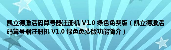 凯立德激活码算号器注册机 V1.0 绿色免费版(凯立德激活码算号器注册机 V1.0 绿色免费版功能简介)