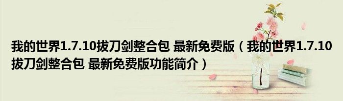 导读 大家好,关于我的世界1 7 10拔刀剑整合包 最新免费版,我的世界1 7 10拔刀剑整合包 最新免费版功能简介这个很多人还不知道,小勒来为大家解