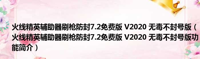 导读 大家好,关于火线精英辅助器刷枪防封7 2免费版 V2020 无毒不封号版,火线精英辅助器刷枪防封7 2免费版 V2020 无毒不封号版功能简介这个