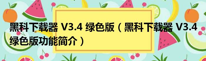 黑科下载器 V3.4 绿色版(黑科下载器 V3.4 绿色版功能简介)