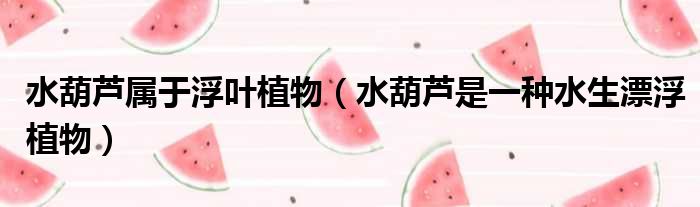 水葫芦属于浮叶植物(水葫芦是一种水生漂浮植物)