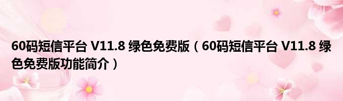 60码短信平台 V11.8 绿色免费版(60码短信平台 V11.8 绿色免费版功能简介)