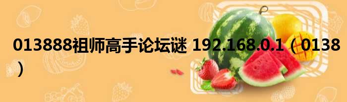 大家好,今天小六子来为大家解答以下的问题,关于013888祖师高手论坛谜 192.168.0.1,0138这个很多人还不知道,现在让我们一起来看看吧!
