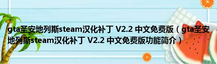 gta圣安地列斯steam汉化补丁 V2.2 中文免费版(gta圣安地列斯steam汉化补丁 V2.2 中文免费版功能简介)