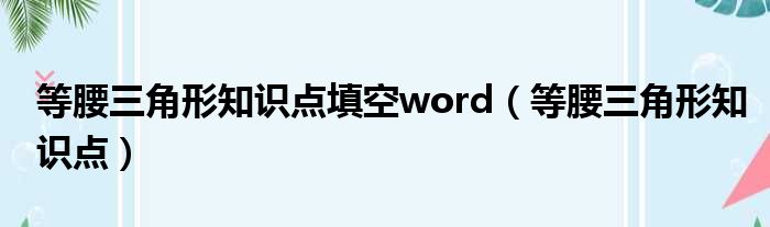 大家好,今天小六子来为大家解答以下的问题,关于等腰三角形知识点填空word,等腰三角形知识点这个很多人还不知道,现在让我们一起来看看吧!