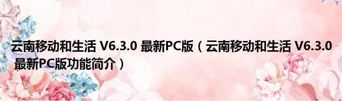 云南移动和生活 V6.3.0 最新PC版(云南移动和生活 V6.3.0 最新PC版功能简介)