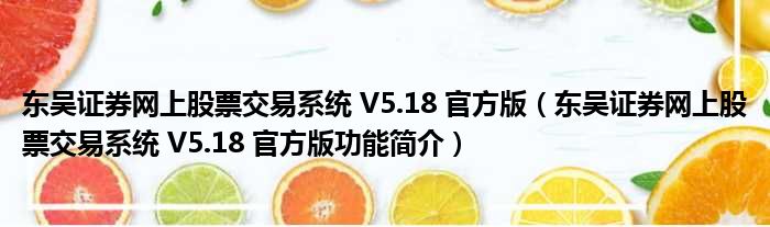 东吴证券网上股票交易系统 V5.18 官方版(东吴证券网上股票交易系统 V5.18 官方版功能简介)