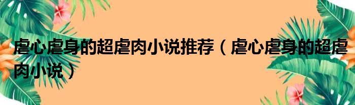 大家好,今天小六子来为大家解答以下的问题,关于虐心虐身的超虐肉小说推荐,虐心虐身的超虐肉小说这个很多人还不知道,现在让我们一起来看看吧!