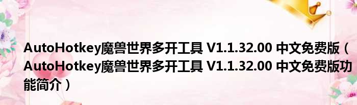 AutoHotkey魔兽世界多开工具 V1.1.32.00 中文免费版(AutoHotkey魔兽世界多开工具 V1.1.32.00 中文免费版功能简介)