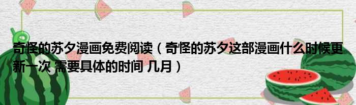 奇怪的苏夕漫画免费阅读(奇怪的苏夕这部漫画什么时候更新一次 需要具体的时间 几月)