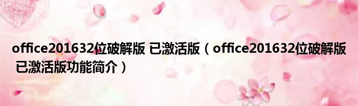 office201632位破解版 已激活版(office201632位破解版 已激活版功能简介)
