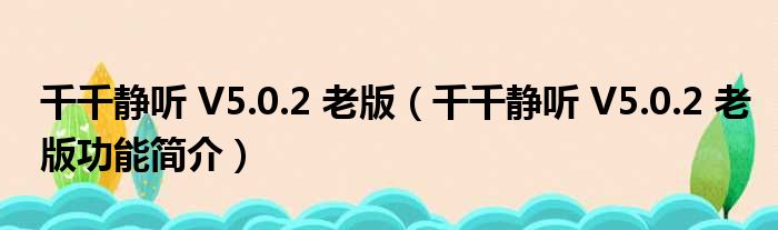千千静听 V5.0.2 老版(千千静听 V5.0.2 老版功能简介)