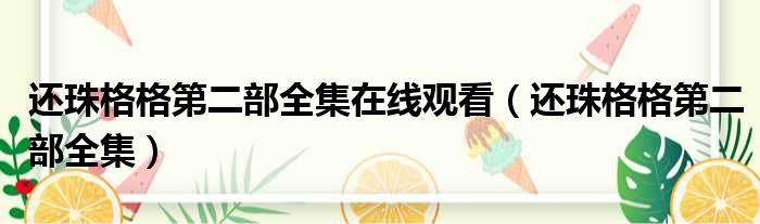 还珠格格第二部全集在线观看(还珠格格第二部全集)