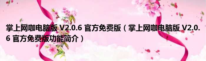 导读 大家好,关于掌上网咖电脑版 V2 0 6 官方免费版,掌上网咖电脑版 V2 0 6 官方免费版功能简介这个很多人还不知道,小勒来为大家解答以上的