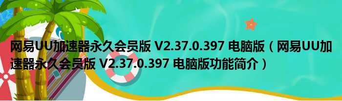 网易UU加速器永久会员版 V2.37.0.397 电脑版(网易UU加速器永久会员版 V2.37.0.397 电脑版功能简介)