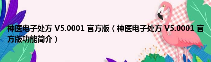 神医电子处方 V5.0001 官方版(神医电子处方 V5.0001 官方版功能简介)