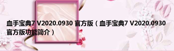 导读 大家好,关于血手宝典7 V2020 0930 官方版,血手宝典7 V2020 0930 官方版功能简介这个很多人还不知道,小勒来为大家解答以上的问题,现在