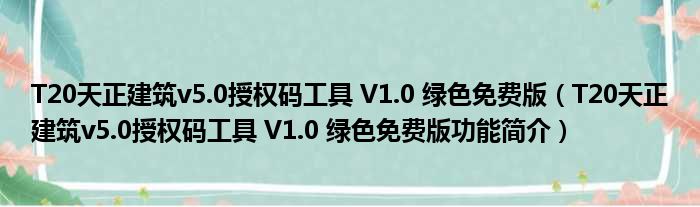 T20天正建筑v5.0授权码工具 V1.0 绿色免费版(T20天正建筑v5.0授权码工具 V1.0 绿色免费版功能简介)